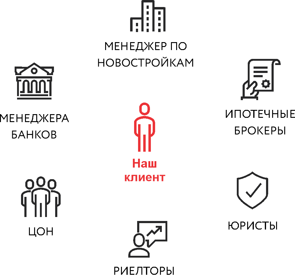Все в одном месте: опытные юристы, ипотечные брокеры, представители банков, лучшие специалисты по недвижимости.